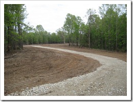 I’ve been swamped with “real” work and so have not done much on the homestead. The power was brought in (not shown). Here are some pictures I took on April 23, 2010 that shows the driveway done and the progression of spring: